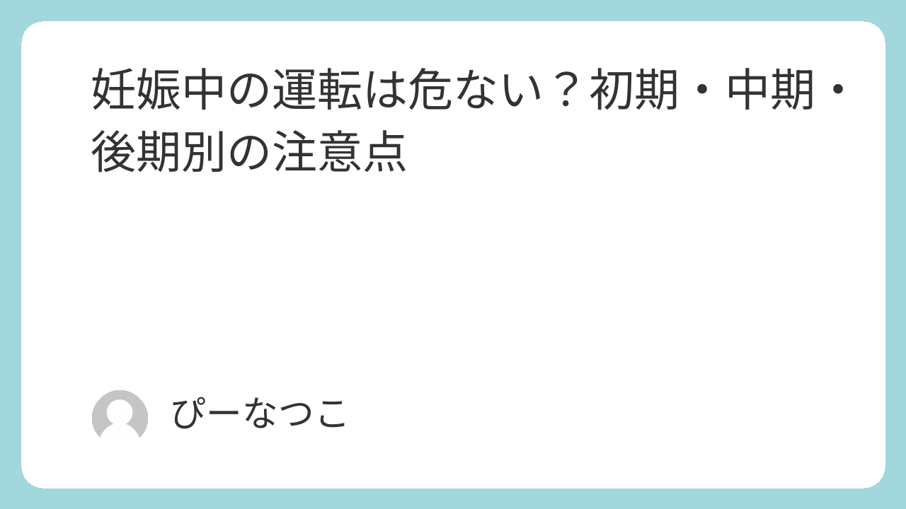 大切なのは「妊娠中かどうか」より、「今の自分の体調で安全に運転できるか」を毎回判断すること。体調が優れない日・強い眠気がある日・お腹が張っているときは無理に運転しないことが最優先です。