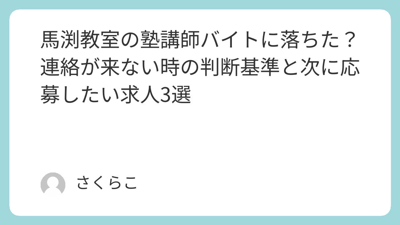 この記事では、馬渕教室の塾講師バイトに落ちたかもしれない時の判断基準を4つのポイントに絞って解説し、次に応募したいおすすめバイト3選をご紹介します。