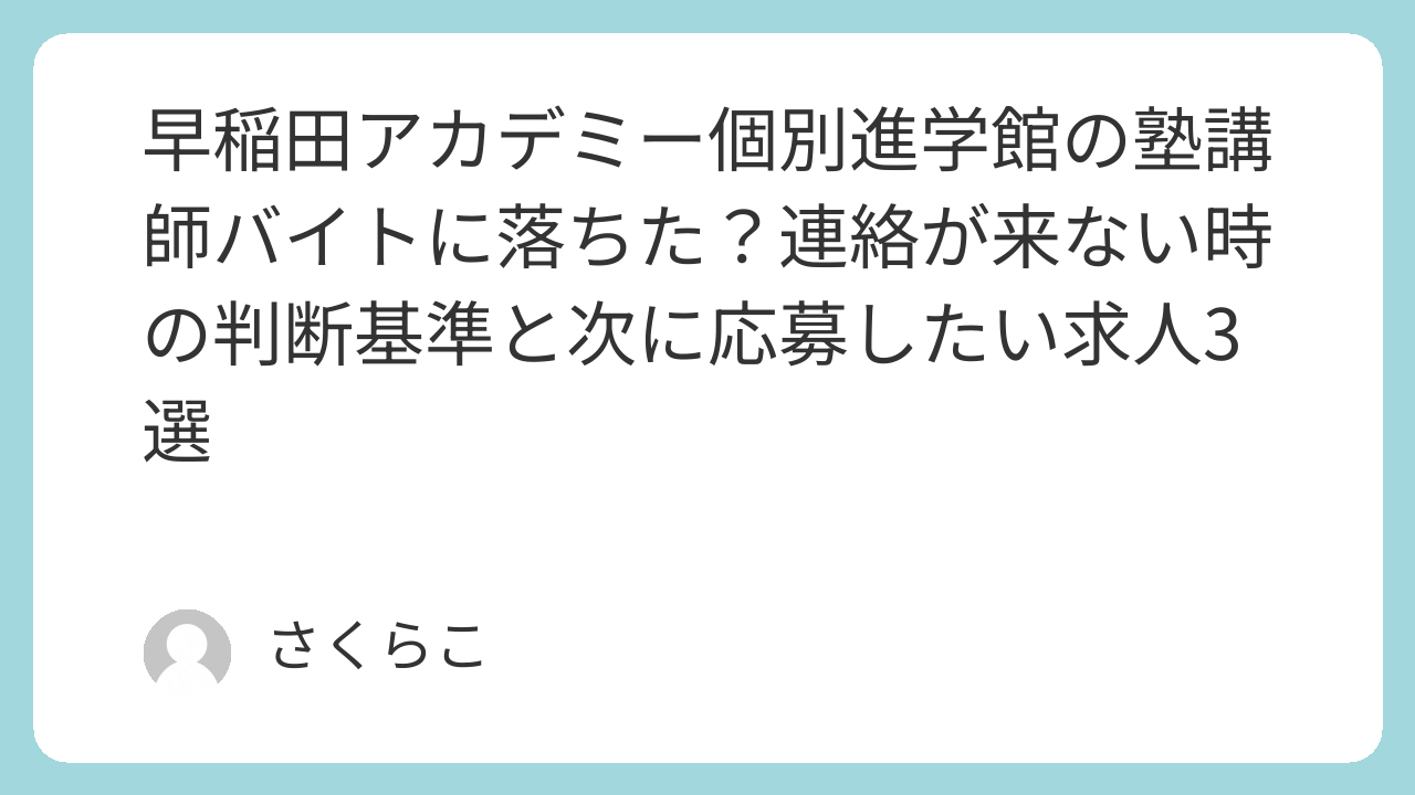 この記事では、早稲田アカデミー個別進学館の塾講師バイトに落ちたかもしれない時の判断基準を4つのポイントに絞って解説し、次に応募したいおすすめバイト3選をご紹介します。