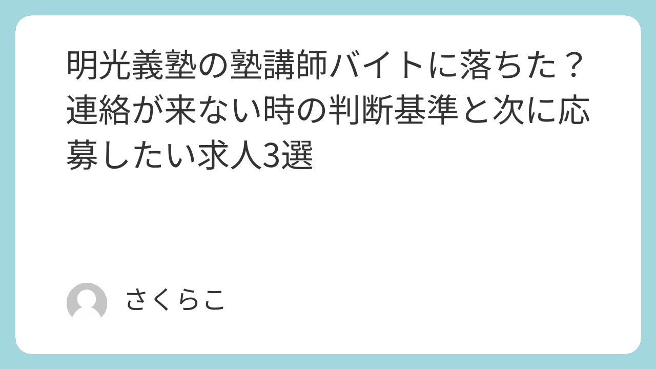 この記事では、明光義塾の塾講師バイトに落ちたかもしれない時の判断基準を4つのポイントに絞って解説し、次に応募したいおすすめバイト3選をご紹介します。