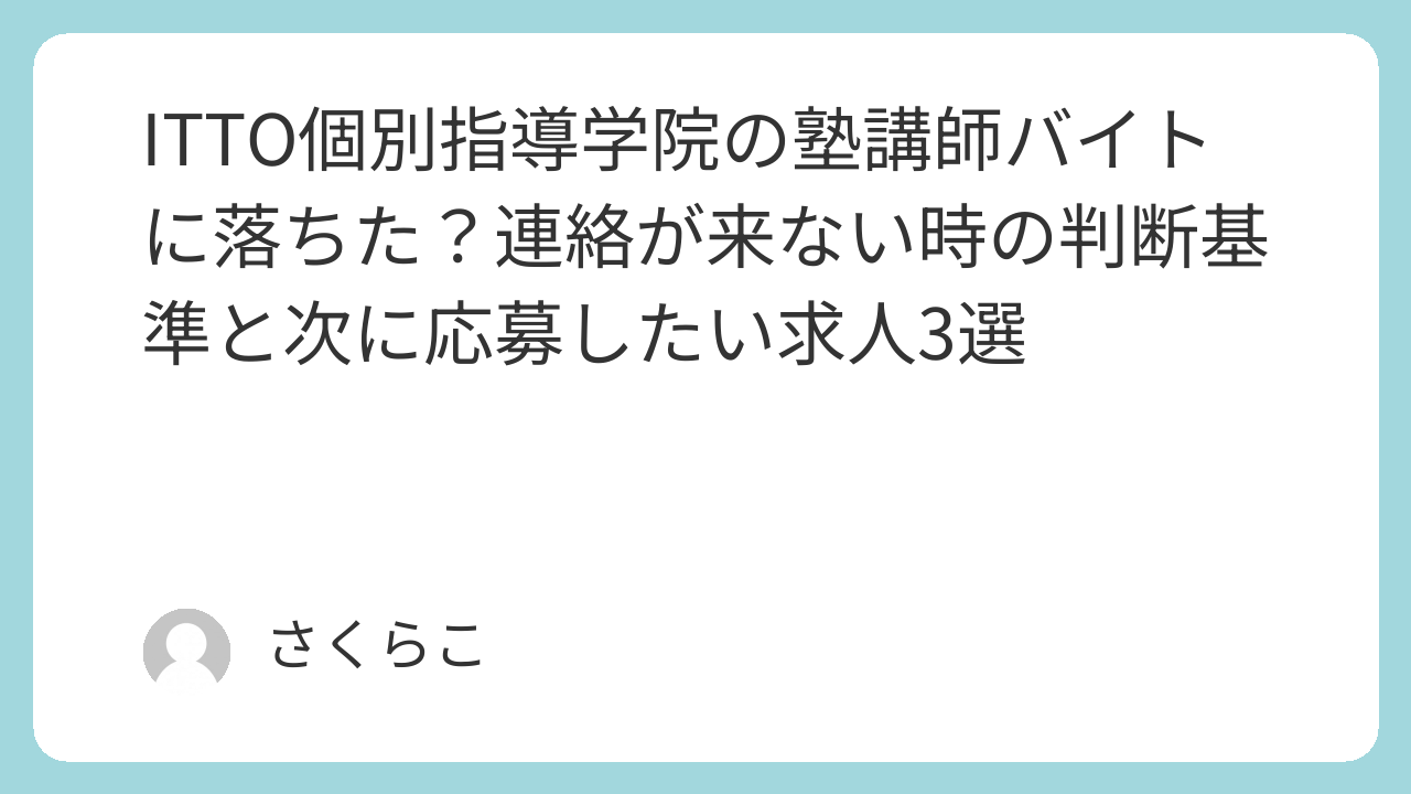 この記事では、ITTO個別指導学院の塾講師バイトに落ちたかもしれない時の判断基準を4つのポイントにまとめ、次に応募したいおすすめバイト3選をご紹介します。