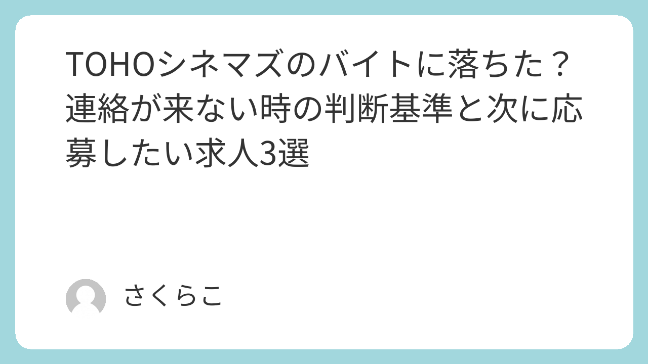 この記事では、TOHOシネマズのバイトに落ちたかもしれない時の判断基準を4つのポイントで解説し、次に応募したいおすすめバイト3選をご紹介します。