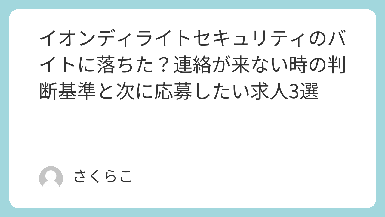 この記事では、イオンディライトセキュリティのバイトに落ちたかもしれない時の判断基準と、次に応募したいおすすめ求人3選をご紹介します。