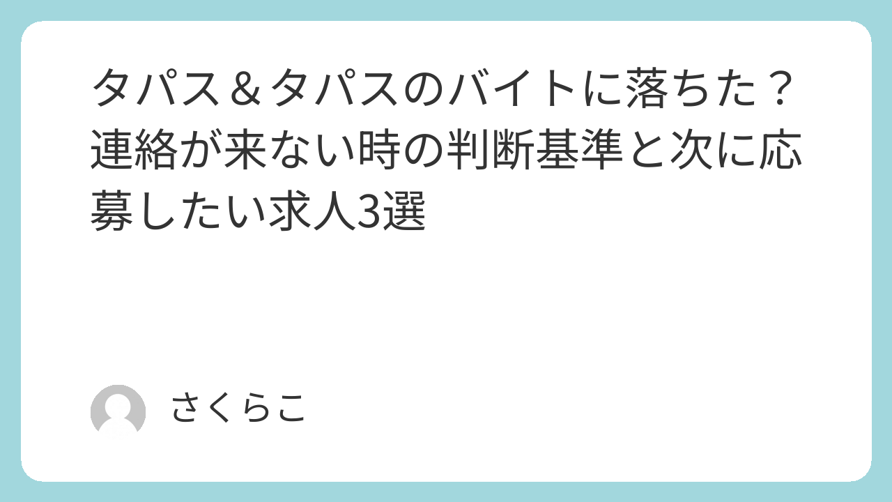 本記事では、タパス&タパスのバイトに落ちたかも?と感じたときの判断基準と、次に検討したいおすすめ求人3選をご紹介します。