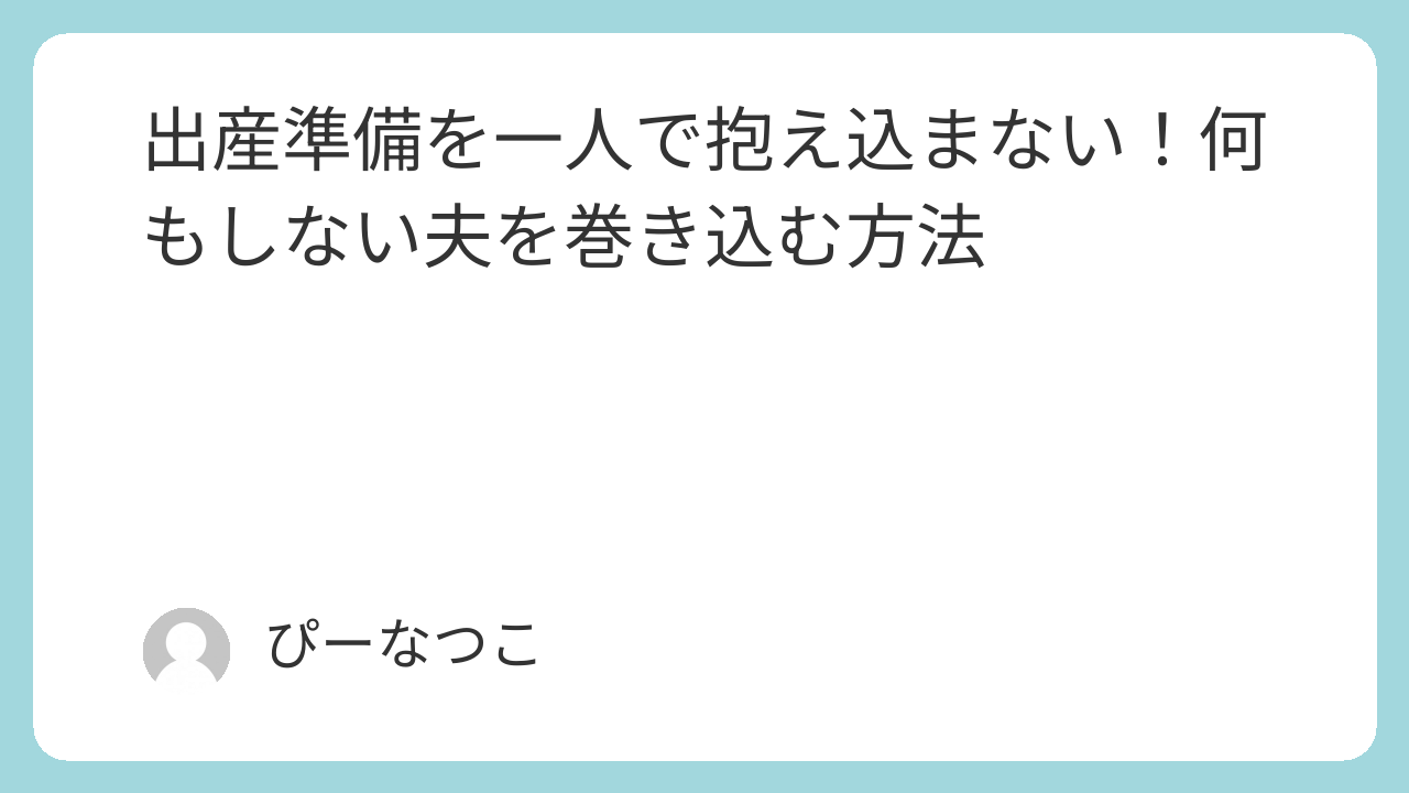 出産準備は「ひとりの仕事」じゃありません。夫婦ふたりで赤ちゃんを迎える準備ができるよう、少しずつ巻き込んでいきましょう。
