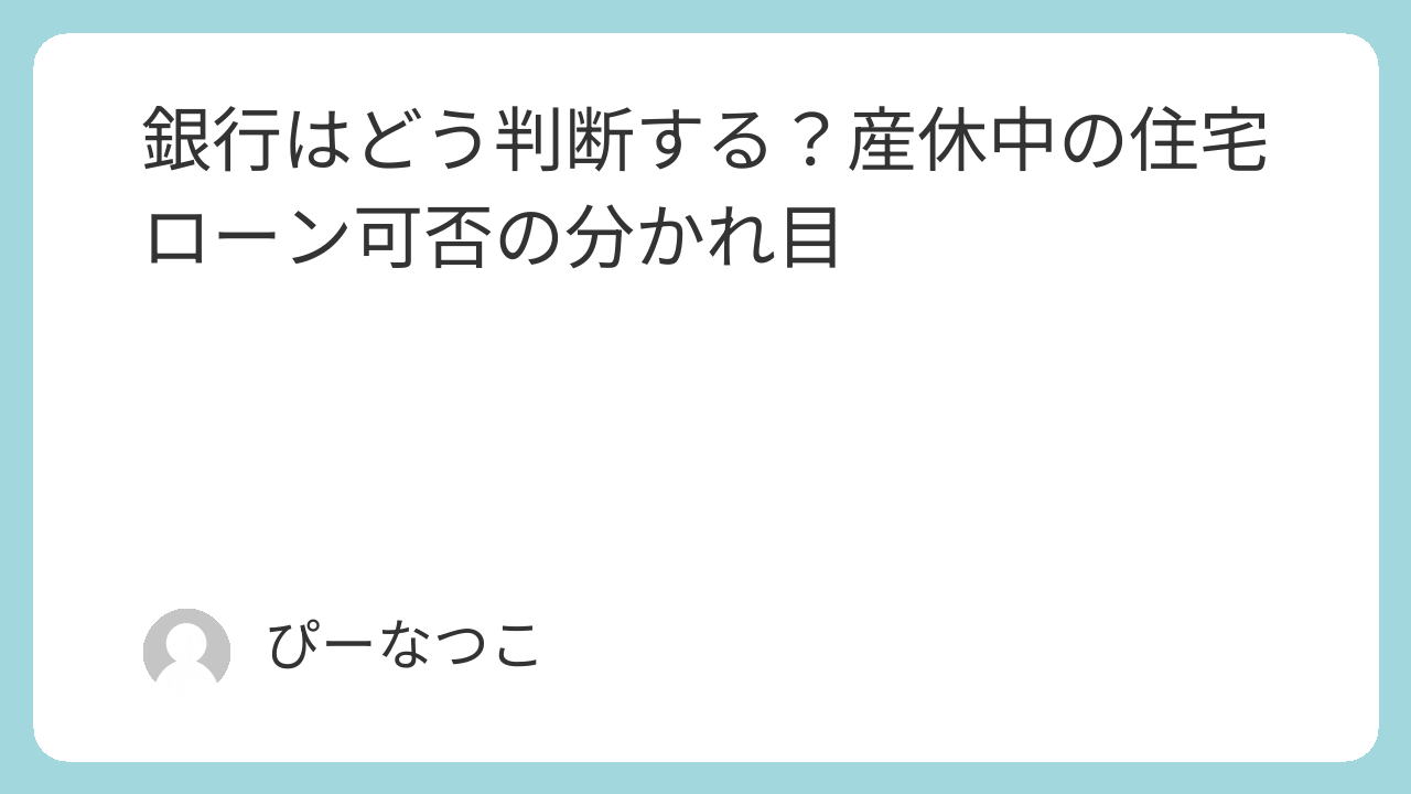 住宅ローン審査で問われるのは「今の収入」ではなく「長期にわたって返済できるか」です。産休・育休中は一時的に収入が下がっても、職場に復帰して安定収入が見込める状況かどうかが最大のポイントになります。