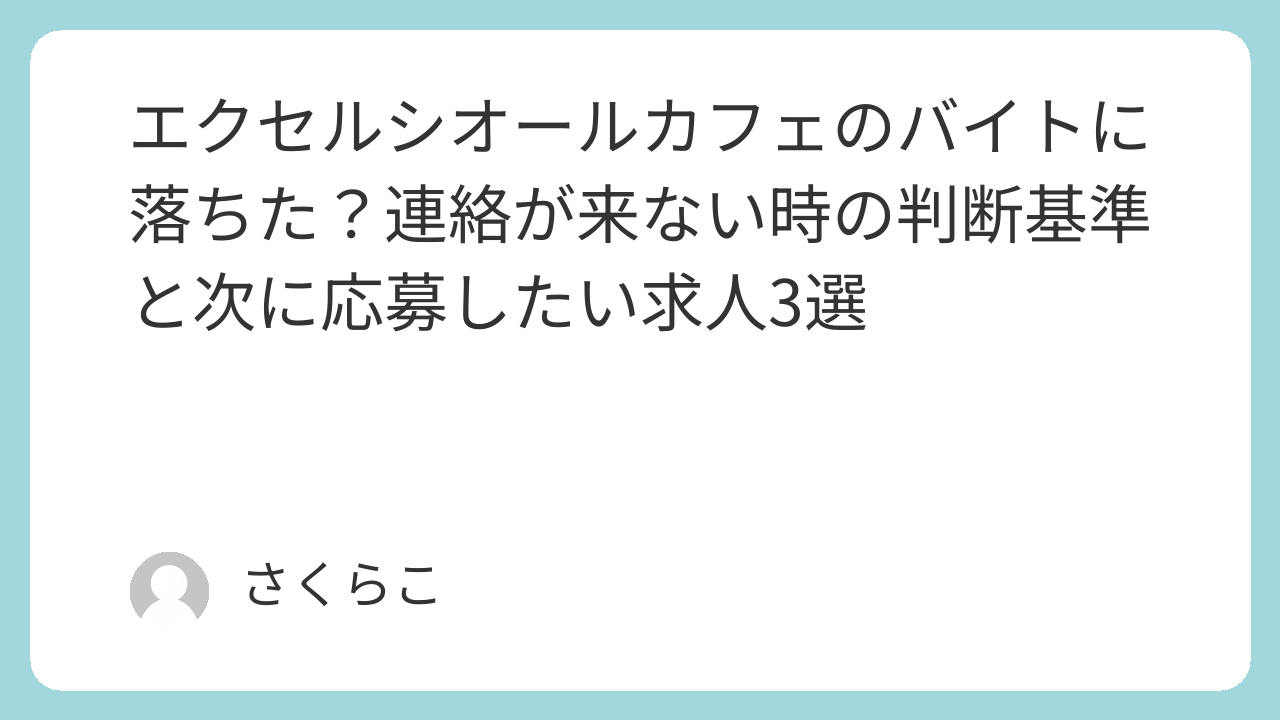 この記事では、エクセルシオールカフェのバイトに落ちたかどうかの判断基準と、次に検討したいおすすめの求人を紹介します。