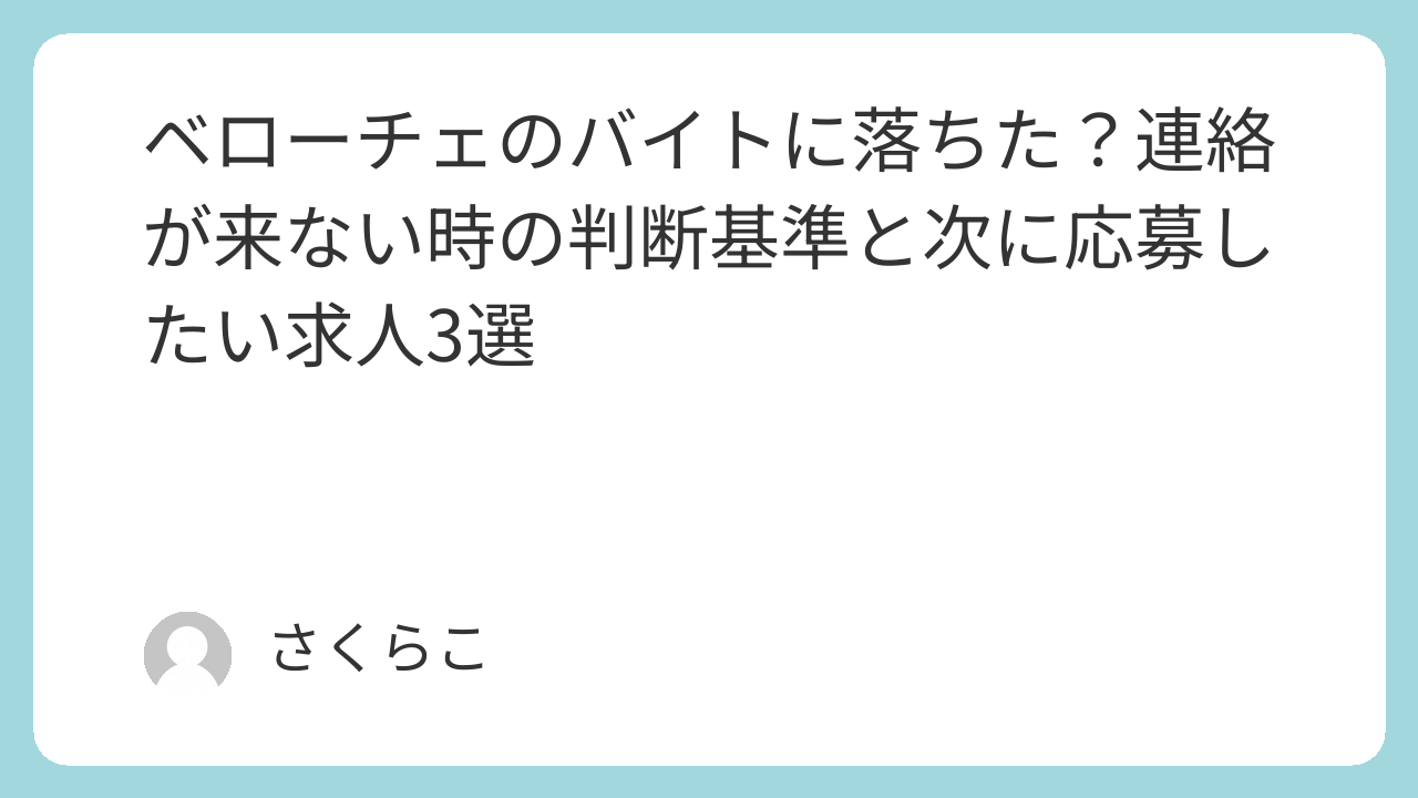 この記事では、ベローチェのバイトに落ちたかどうかの判断基準と、次に検討したいおすすめ求人を紹介します。