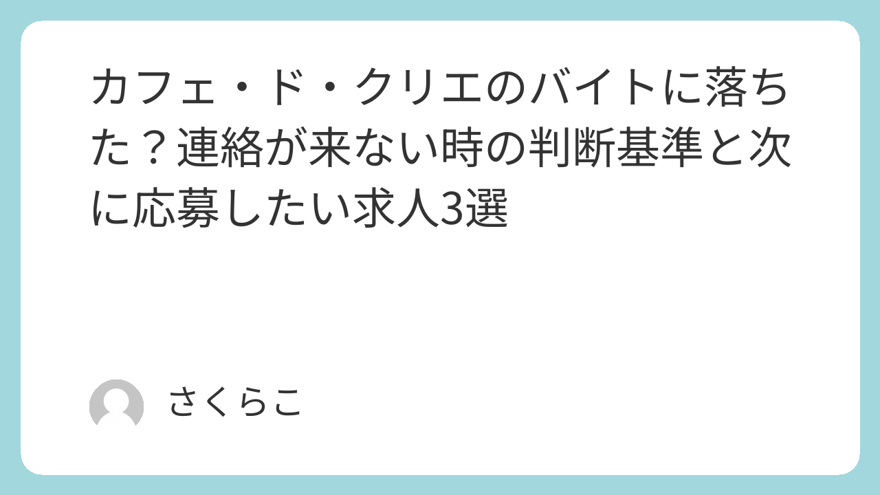 この記事では、カフェ・ド・クリエのバイトに落ちたかもしれないときの判断基準と、次に検討したいおすすめ求人を紹介します。