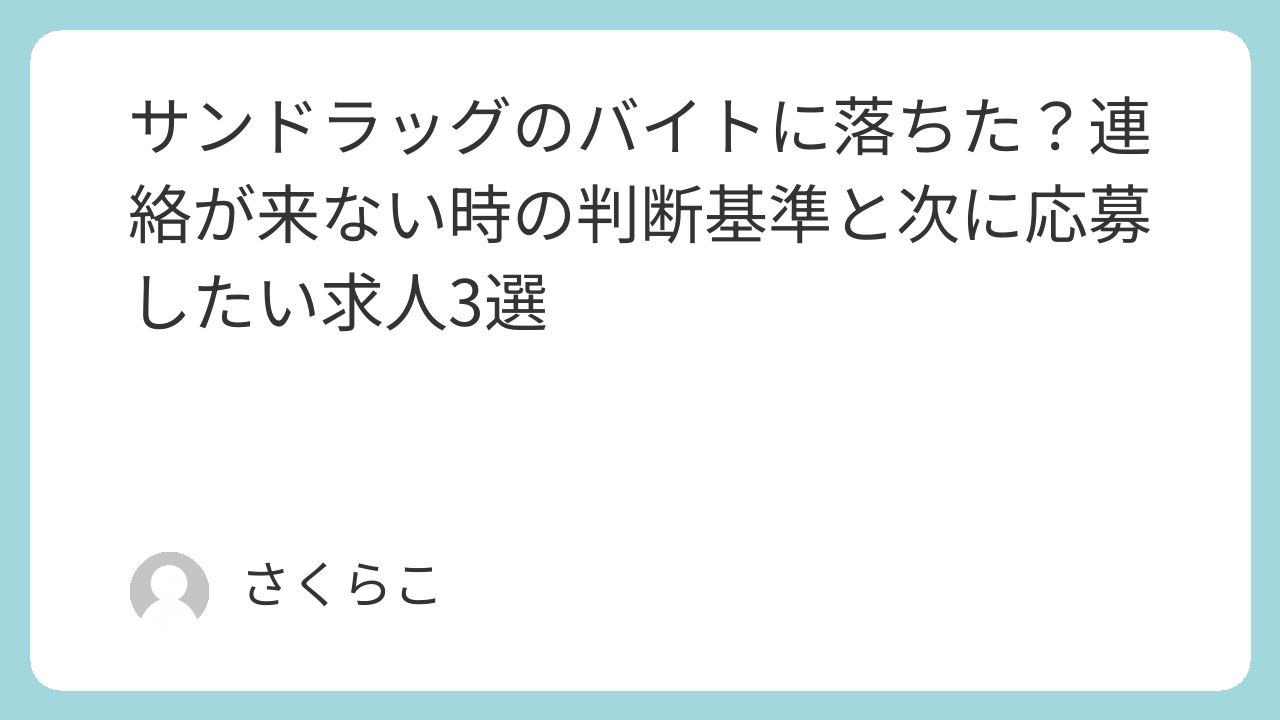 この記事では、サンドラッグのバイトに落ちたかどうか判断するポイントと、次に応募したいおすすめバイト3選を紹介します。