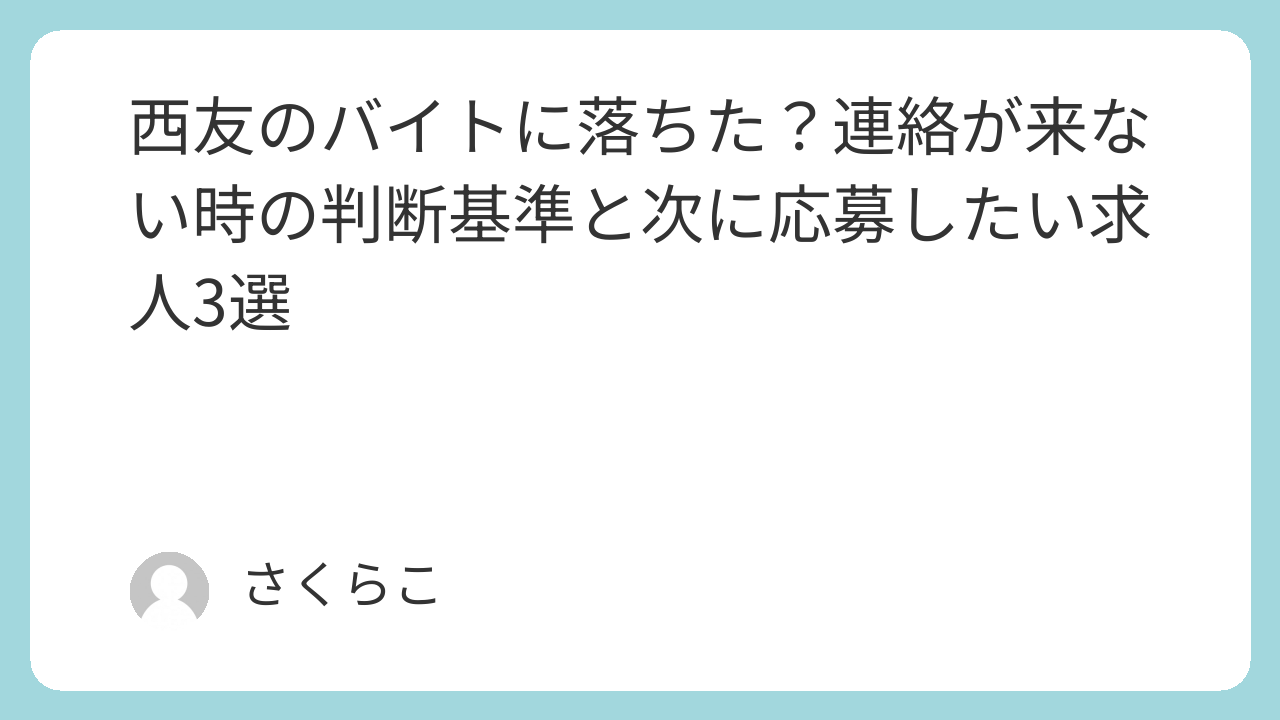 この記事では、西友のバイトに落ちたかもしれないと感じた時の判断基準と、次に検討したいバイト先3選を紹介します。