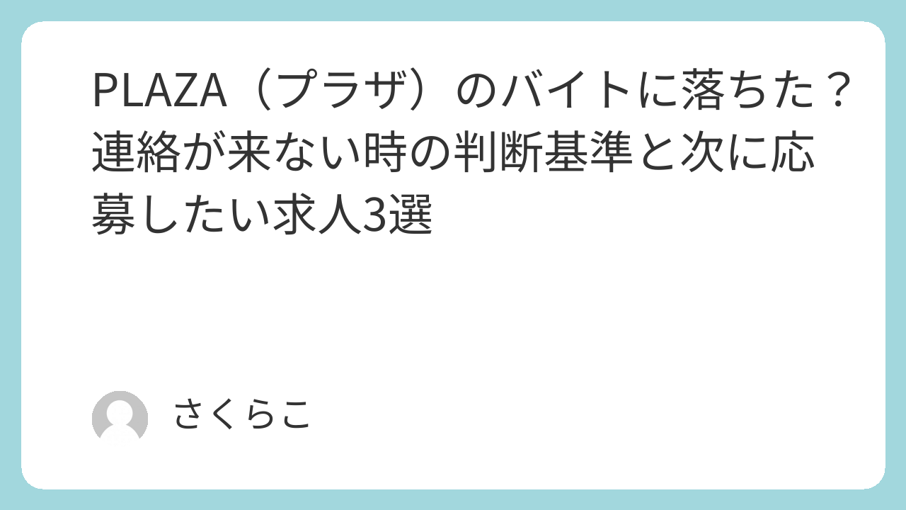 この記事では、PLAZAのバイトに落ちたかもしれない時の判断ポイントと、次に検討したいおすすめバイト3選を詳しく解説します。