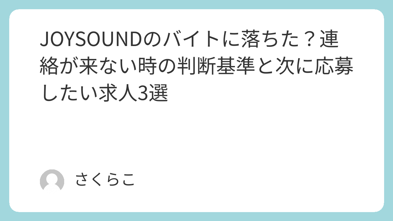 この記事では、JOYSOUNDのバイトに落ちたかもしれない時の判断基準と、次に応募したいおすすめバイト3選を詳しく解説します。